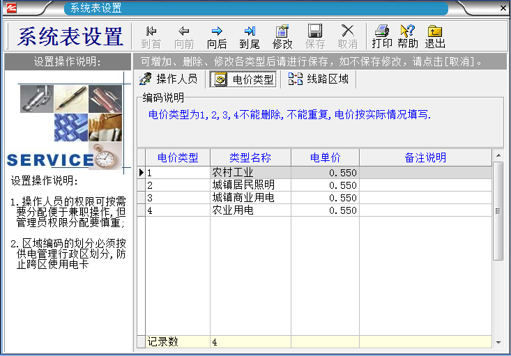 2.電價類型不能刪除只能修改。