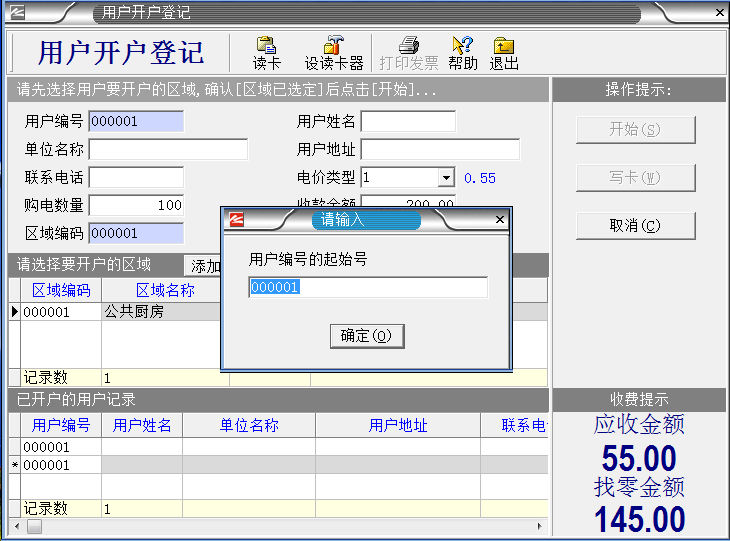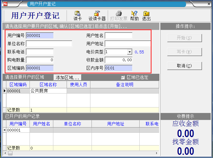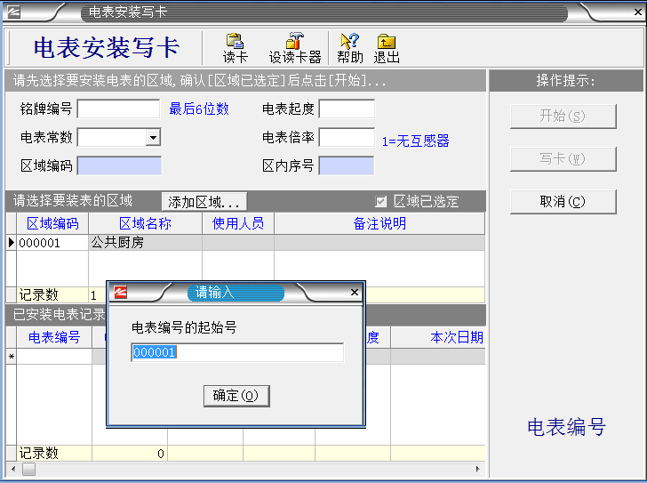 系統(tǒng)設置完成之后,把IC卡插入讀卡器,就進入制作“區(qū)域設置卡”。如下圖