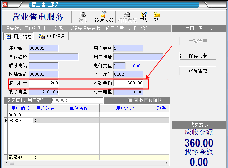 5、輸入完成“購電金額”以后,按回車鍵一次,右上角的“保存寫卡”才會生效。
