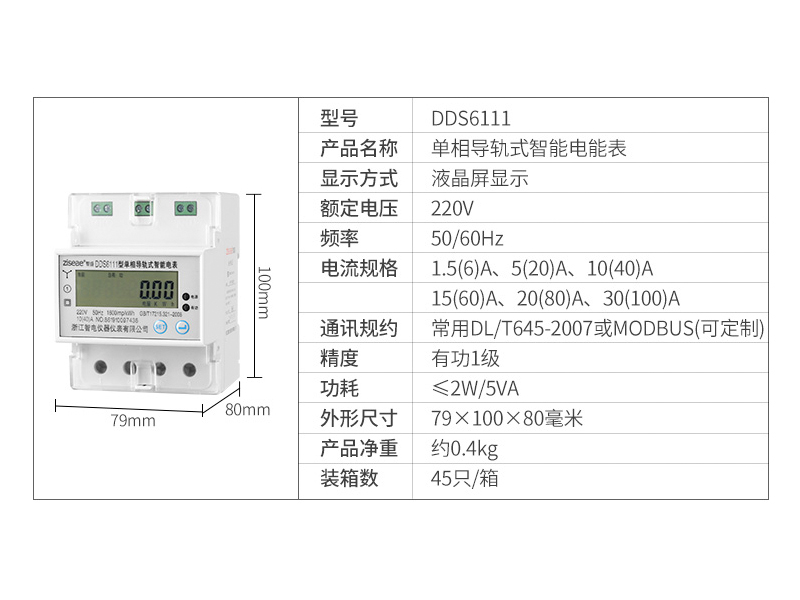DDS6111單相導(dǎo)軌式電表4P(RS485通訊接口)