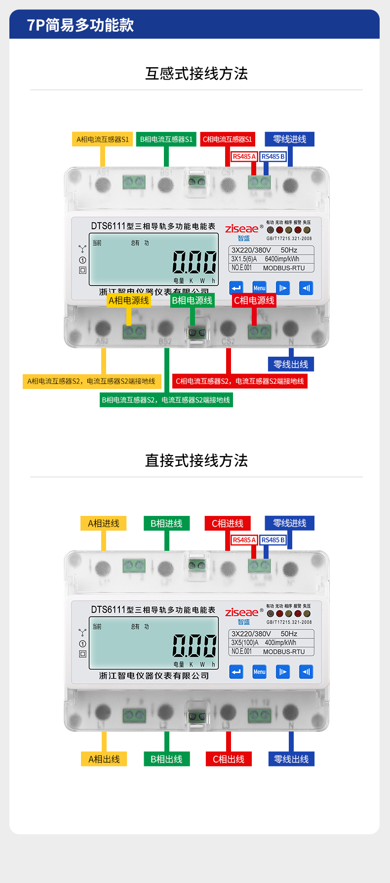 7P三相簡易多功能導軌式電表