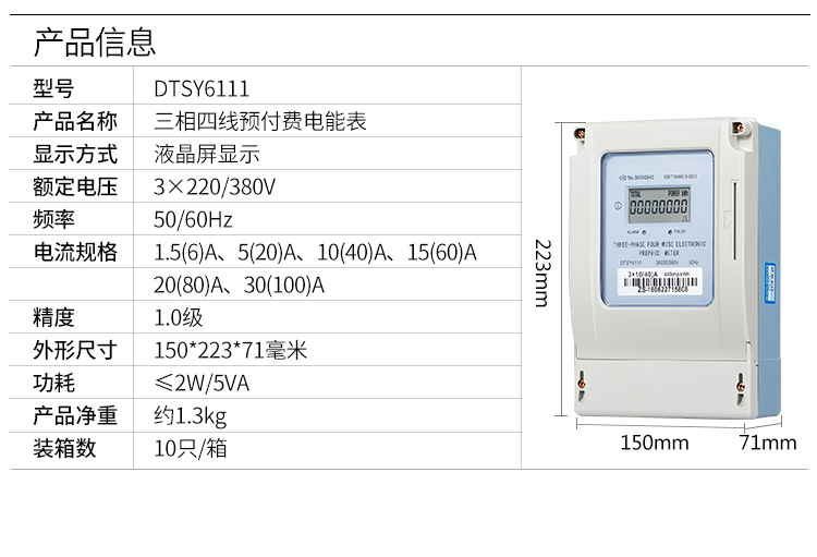 DTSY6111系列插卡式三相電子式預付費電能表系我公司采用集成電路,16位A/D轉換、數(shù)字乘法器、應用數(shù)字采樣處理技術并由先進的單片機處理系統(tǒng)進行數(shù)據(jù)的采集、處理和保存及應用SMT工藝制造的儀表。適用于計量額定頻率為50Hz或60Hz的三相三線或三相四線交流電網中有功電能的消耗。
